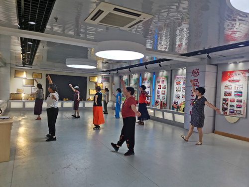 大家见面后相互称赞彼此的学习精神,寒暄了解周末如何度过。伴随着《又见炊烟》优美音乐的响起,在小组负责人孟老师及社区党员李老师的带领下,成员们翩翩起舞,婀娜多姿,开始下蹲,抬手,双手上举,右转身……大家一个动作接一个动作认真地揣摩练习;组员们练习热情高涨,期间不断练习了舞蹈《又见炊烟》、《卓玛》、《弯弯的月亮》等,没有舞蹈功底的组员,在老组员及负责人的耐心讲解和示范下,舞步渐渐娴熟起来,大家个个精神饱满,反复练习动作,谁也不甘落后;休息期间,大家相互交流沟通,适时指正对方的舞蹈动作,共同进步,“轻歌曼舞”舞蹈小组的组员用自己的行动舞出了美丽与健康,也跳出了不一样的盛夏暑期生活。同时,“轻歌曼舞”舞蹈自助小组的开展推动了社工站康乐队伍的规范发展,也提升了队伍负责人的组织管理、协调能力。