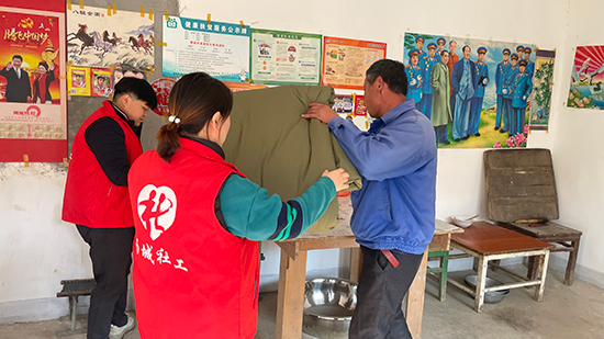 港沟社工积极应对寒流天气,确保困难群众温暖过冬,进一步弘扬中华民族尊老敬老的传统美德。11月26日,社工站前往郭家村,助力街道为孤寡老人送爱心棉被活动。