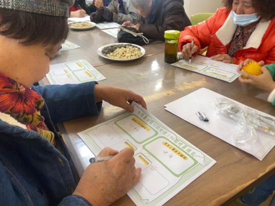 灯红映素雪,猜谜竞欢愉。茶话会的最后阶段,社工站社工引导参与居民进行情景游园,坠置着灯谜的彤红灯笼装扮着喜庆小院,头脑风暴着的社区居民思考、讨论着破解灯谜、多样化社区活动的思路,有不得其解的困顿,有集思广益的热烈,更有灵光乍现的惊喜,欢乐氤氲,热闹喧腾,满载着热烈氛围充盈着素裹银披的小院。