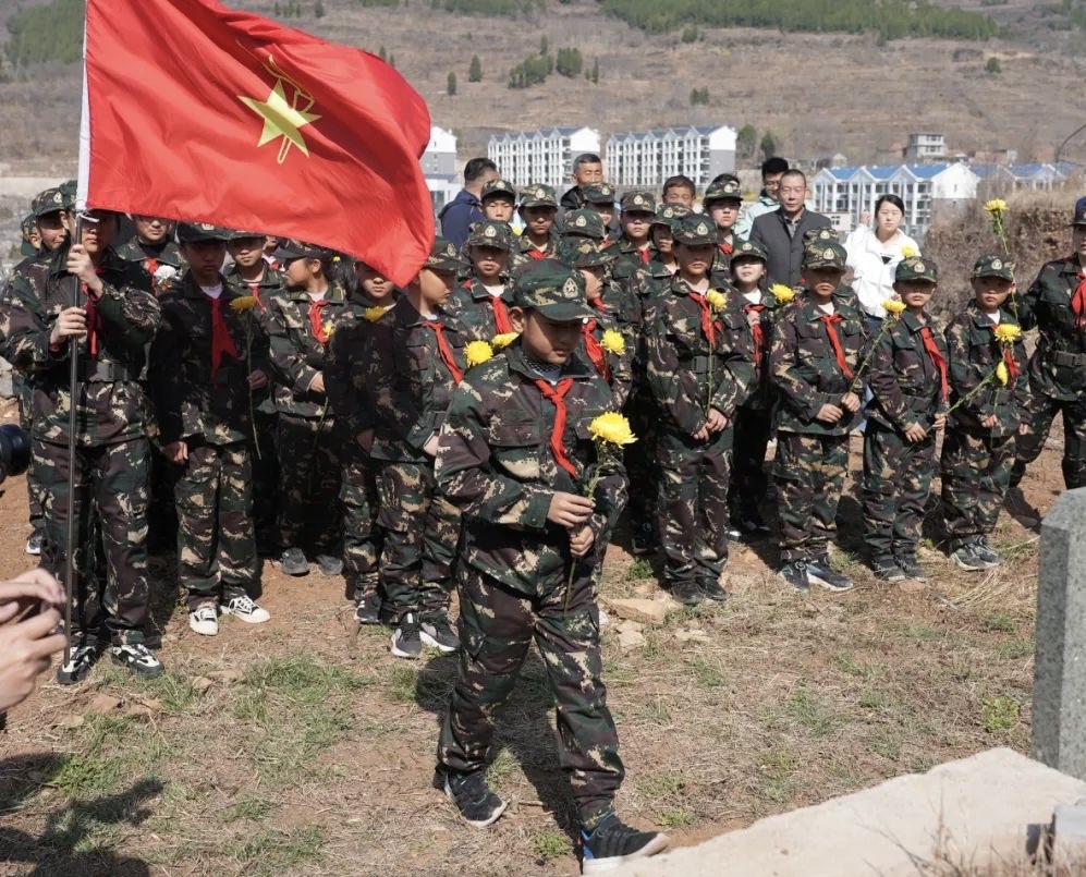 活动在庄重肃穆的氛围中拉开帷幕。二等功臣、思想政治指导员彭守堂动情地讲述了陈登汉烈士的英雄事迹,大家听后无不动容。随后,全体人员手捧鲜花,敬献在烈士墓前。一朵朵鲜花寄托着大家的追思与崇敬。默哀结束后,青少年代表走上前,带领大家重温入队、入团誓词,表达了新一代青年继承先烈遗志、为实现中华民族伟大复兴而努力奋斗的坚定决心。