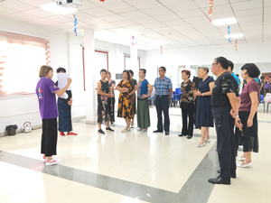 在活动正式开始前,社工首先就“济南联谊艺术团”的活动时间、如何保持活动室场地卫生、疫情防控措施与免责声明书的填写进行详细说明。随后大家在团长陈阿姨的带领下开始了活动,为了确保万无一失的参加周五泉水节的闭幕仪式,旗袍队在团队指导老师张老师与陈阿姨的指导下,一遍遍不间断的排练,分析舞台动作要领,总结表演技巧,力求做到最好。一群阿姨们个个手摇一把扇,在悠扬的音乐中,宛如画中人,款款走来,端庄优雅,高贵婉约,传递着东方女子的古典神韵。