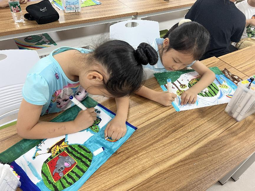 绘画过程中,小朋友们相互交流、相互帮助,尽情享受这欢乐时刻,现场笑声不断,十分热闹。经过小朋友们一番天马行空地创作,一幅幅个性十足的画作就诞生了。各式各样的画作充分展示了小朋友们的想象力和创造力。