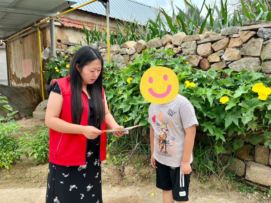 走访中,儿童对社工的到来表示欢迎,经过前面很多次的接触,困境儿童与社工姐姐的陌生感早已消除,深层信任已经建立。孩子们主动展示自己的暑假作业,告知社工自己的疑惑,与社工分享近期发生在自己身边的奇闻趣事。