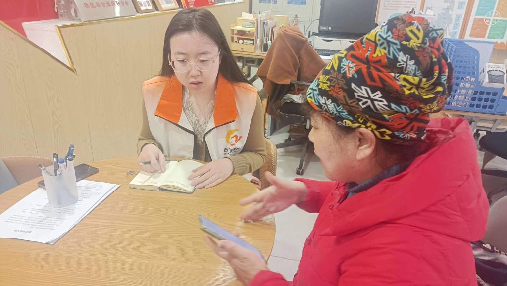 2月28日,解放路社区“大院邻里”志愿服务队负责人刘建华找到社工,提出想要走访社区困境群体。征求社区意见后,社工协助“大院邻里”志愿服务队初步拟定包含失独、独居、重病等重点服务群体的探访名单。3月7日上午,在社工、社区网格员的陪同下,志愿者敲响5户社区居民家门,为服务对象测量血压。志愿者通过聊天询问其日常起居情况,并提醒达到高龄补贴标准的服务对象及时申请福利,真正实现“政策找人”。