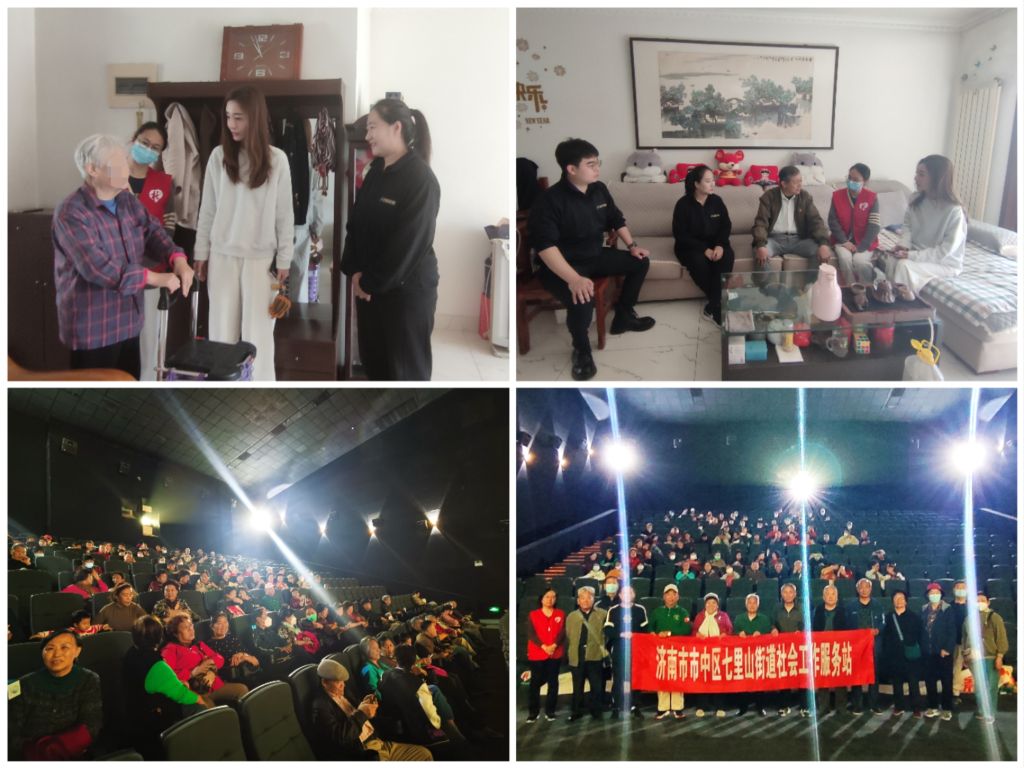 社工站链接山东文旅星辉影城,联合海珀社区开展九九重阳节入户探访与公益观影活动。社工与影城工作人员来到老党员傅大爷家中,社工认真聆听讲述自己的退休生活并邀请老人一起观影,老人欣喜的答应下来。然后又来到独居老人郝阿姨家中,询问了老人最近的生活状况,帮助简单的收拾了屋子并送上礼品,邀请阿姨一同观影,度过温暖的重阳节。随后大家来到了星辉影城,同受邀请前来观影的海珀社区辖区老党员汇合,一起观看亲情主题电影《硬核老爸》,电影着重探讨人口老龄化时代背景下空巢老人、失独老人、老年人数字鸿沟、互助养老等热点话题,观影中一些老人触景生情落下了眼泪,影片温情而又真实,不仅展现了当今社会现实,还能够发人深省,在现有力量推动下,需要更多的力量帮助老人们跟上时代步伐。