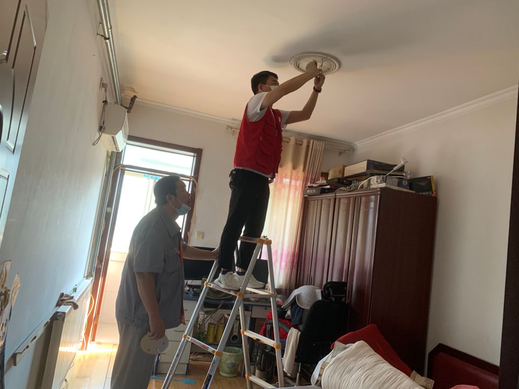 近日,社工站的社工们在例行走访工作中,了解到低保人员乔先生家中的灯具损坏,而本人因身体原因无法更换,给日常生活带来了诸多不便。社工们立即联系了社区共享管家,约定好时间后再次来到乔先生家协助维修。换灯时,在维修人员不便爬上梯子的时候,社工亲自上阵登上高处为其更换了家中的灯具。电灯亮起的那一刻,不仅点亮了昏暗的房屋,更点亮了乔先生脸上的笑容。