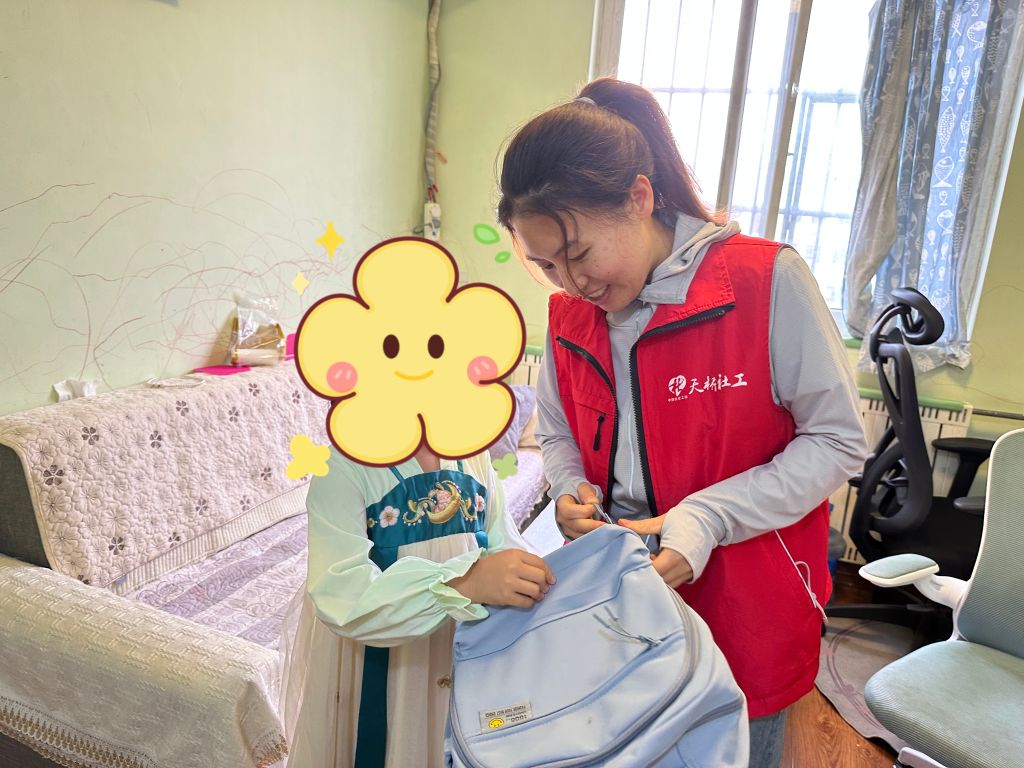 社工深入服务对象小林(化名)家中,运用鼓励、同理心等专业技巧与儿童保持信任关系,深入观察儿童的生活、学习环境,进行详细的调查和记录,完善困境儿童帮扶档案。社工还为困境儿童送去了书包、书籍等学习用品,并从家庭成员之间的相处模式及儿童同伴关系等方面进行了深度探究,鼓励其好好学习,在困境中发现生活的美好,也向儿童监护人宣传《未成年人保护法》、相关惠民政策,更好地传递民政声音。