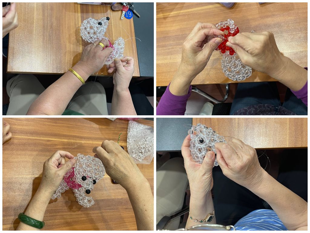 社工站精心准备各式各样具有代表性的手工艺品材料,如彩色珠子、线绳等。而老年居民们也积极参与其中,他们充分发挥自己的创造力和想象力,互相交流相互借鉴,创作出一件件精美绝伦的手工艺品。通过亲手制作这些可爱的海绵宝宝、kitty猫和米菲兔,老年居民们不仅激发了自己的动手能力、学习兴趣,还感受到了社区关怀和温暖。“这样的活动真是太有意义了!通过手工艺品的制作,我们老年人不仅可以锻炼手脑协调能力,还能增加社交活动,感受到社区的关心。非常感谢社工站组织这样的活动!”一位参与活动老人满意的评价。