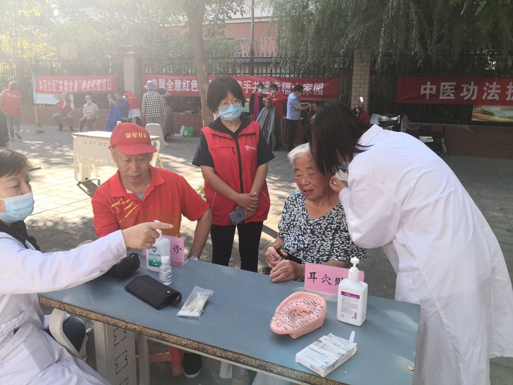 义诊活动中,医务人员为老人测量血压,细致入微的进行健康检查、状况评估;通过中医按摩现场为老人们推拿,舒缓其身体不适;针对老年多发的骨科、心脑血管、心脏病、高血压等慢性病症进行中医问诊、耳穴贴压,把握老年人群健康诉求,纾解焦躁畏疾情绪。社工们及时做好活动项目介绍及现场秩序维护,保障活动有序进行,保障每一位到来的老人都能按需享受义诊服务。