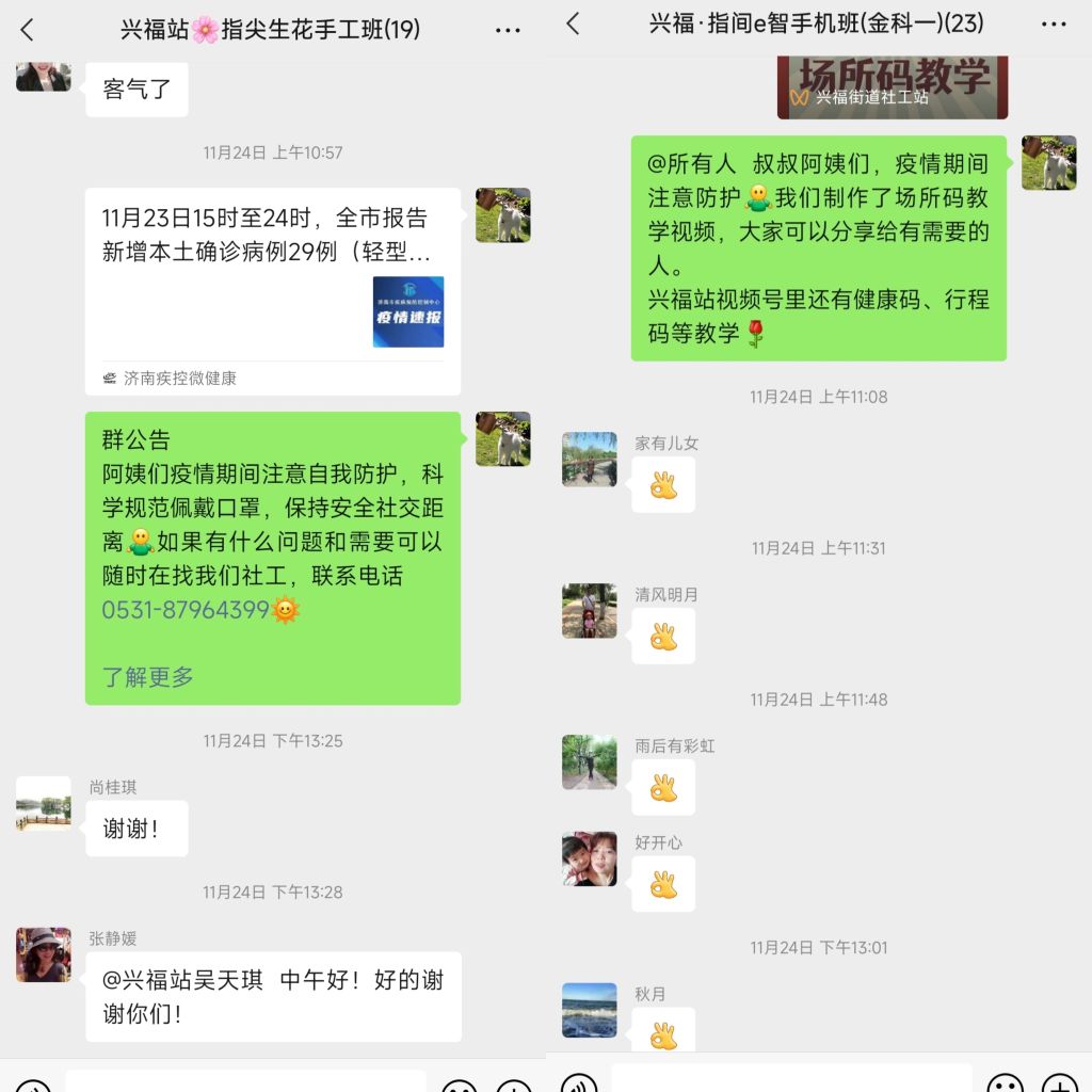 除了坚守疫情防控一线外,兴福街道社工站还开通了“逆风飞翔”电话绿色通道计划,联合高校社会工作专业师生力量,为辖区内困境儿童提供网课指导、情绪支持和舒压。对于辖区居民提出的疑问,社工们也积极答疑解惑,向居民们宣传最新的防疫政策,提醒居民做好个人防护,有问题找社工。疫情只能暂时隔绝人与人之间的物理距离,却无法阻隔社工的热忱关怀与专业服务。
