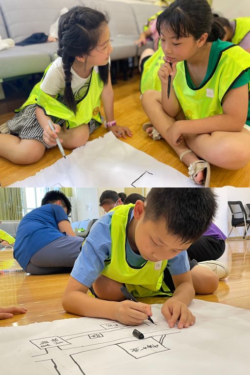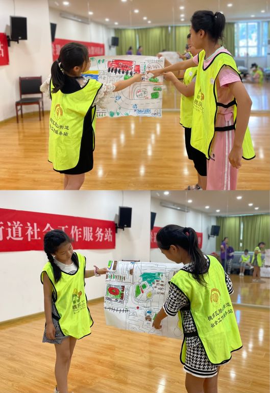 漫步社区、绘制地图。营员们从自己的视角出发,熟悉社区环境、了解社区资源、发现社区问题,不仅增进了其社区参与感和对社区的归属感,同时也促进了其社区参与意识的初步形成。