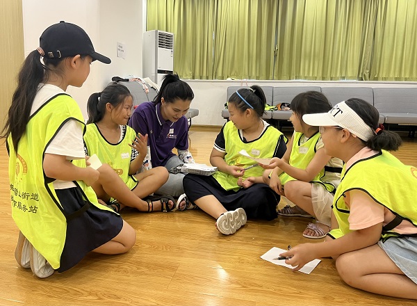 经过30分钟的走访调研,营员们收集到了许多居民对社区问题的看法与建议。在社工的引导下,营员们分别从“社区存在的问题”、“问题存在的原因”以及“如何解决社区问题”三个方面展开积极讨论。营员们积极发表意见并提出解决对策,提出了“遇到踩踏草坪、破环坏境的小朋友及时制止并告知其家长;制作环境保护宣传手册,倡导社区居民爱护环境、不乱扔垃圾;及时发现社区内损坏的设施并告知物业进行维修”等倡议,为开展社区微治理行动奠定了良好基础。营员小瑞(化名)在活动结束后说道:“我觉得参加这样的活动很有意义,既能通过自己的观察发现社区问题,还能一起讨论解决方法,为解决社区问题贡献自己的力量。”