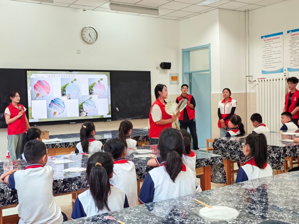 文化之花,绽放希望。为弘扬和传承中国非遗文化,提高儿童对中国传统手工艺的认识和保护意识,文昌街道社工站联合长清区博物馆链接山东工艺美术学院现代手工艺术学院在清河街小学开展“童享‘漆’彩非遗,传承国风遗韵”儿童非遗漆扇制作体验活动,共44名儿童、5名老师、18名志愿者参与。