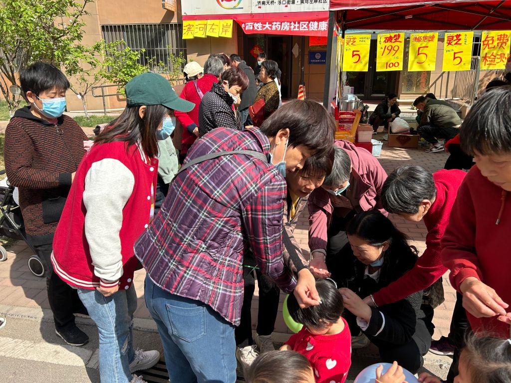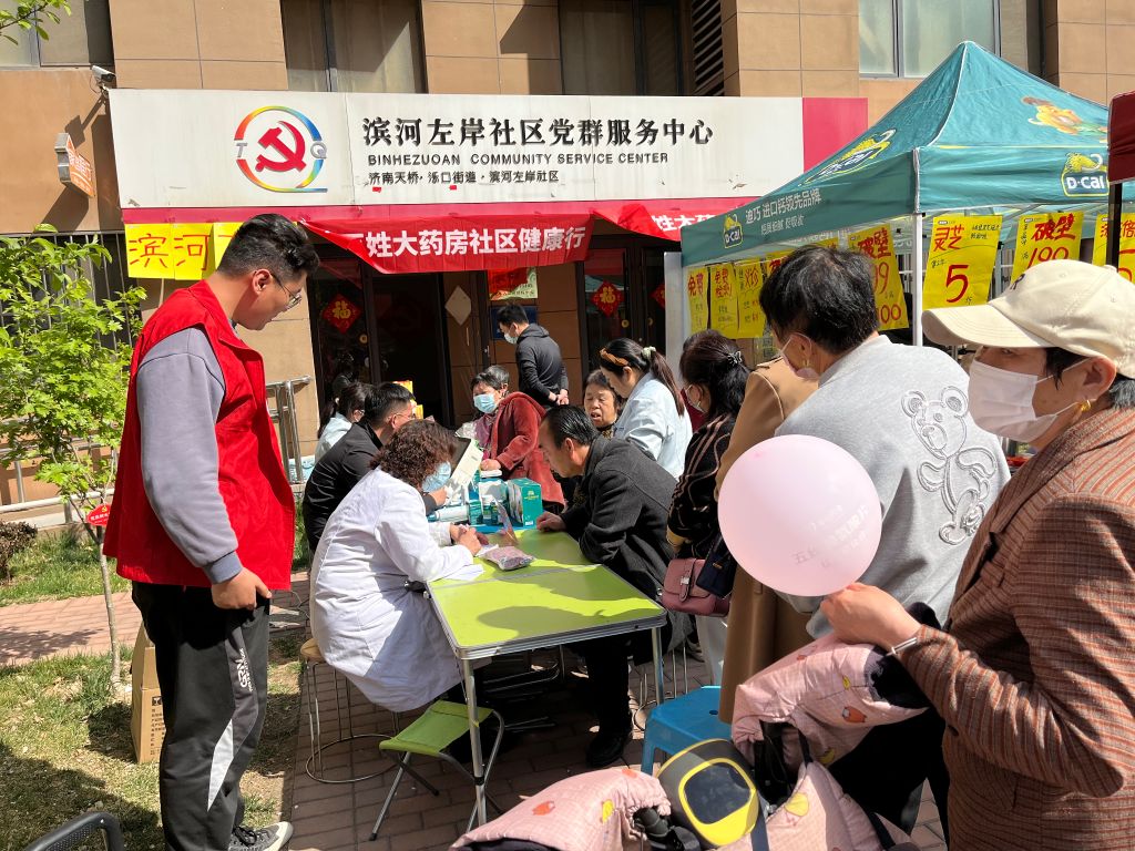 3月30日,泺口街道社工站链接辖区老百姓大药房为滨河左岸社区居民提供覆盖全生命周期医疗服务。
