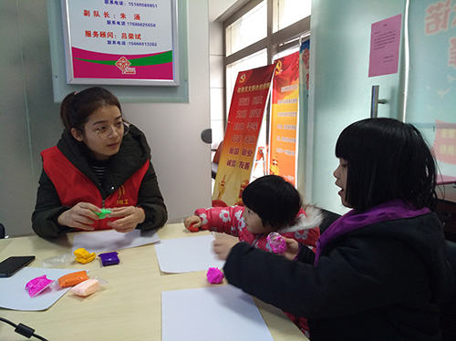 社工带领孩子制作太空泥