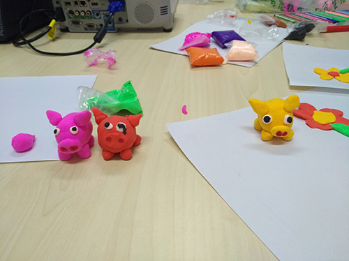 活动开始时社工详细介绍了活动注意事项,并向大家讲述了橡皮泥的历史及发展状况。没等社工讲完小朋友们便跃跃欲试,迫不及待的动起手来,孩子们在社工的带领下充分发挥自己的想象力和动手操作能力,很快捏出了一个个可爱的作品,有小花猫、小黄人、小猪......别看小朋友年纪小,捏出来的作品可都惟妙惟肖。看着自己手中一个个小作品,小朋友脸上掩饰不住自豪感。活动室里洋溢着欢声笑语,充满了快乐和幸福,孩子们忙着向一起活动的小伙伴们展示自己的作品,脸上洋溢着成功的喜悦。