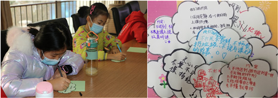 守约定。社工站社工向小营员们澄清了小组的活动目标、小组规范与契约,引导小营员们把小组约定写在卡纸上,让他们能够明确冬令营入营的课堂小组规范,认清自己的在小组中的角色与任务,同时,社工站社工向小营员们介绍了本期的冬令营主题活动,一起相约炫彩冬日暖心活动。