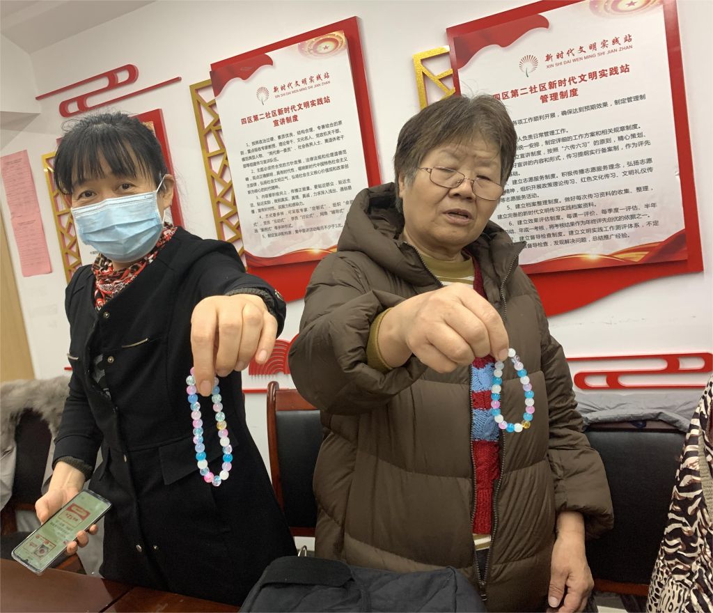 11月22日上午,市中区王官庄街道社工站联合王官庄街道四区第二社区,开展了“益智乐园 岁月人生”老年人支持小组第六节活动,本次的活动的主题是“串珠手链”。