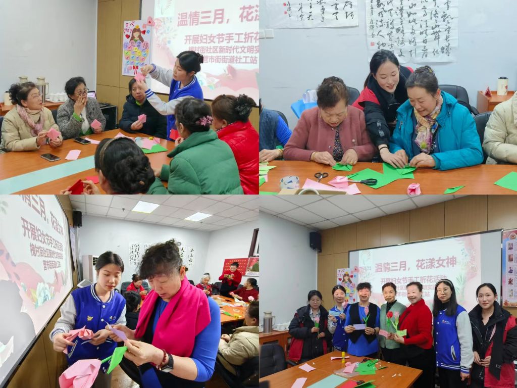 人间最美三月天,春花烂漫展新颜。在第114个“三八”国际妇女节来临之际,为关爱赞美女性朋友、传递节日祝福,济南市槐荫区营市街街道社工站联合营市街街道槐村街社区、绿园社区开展了“智享系列”社工室建设活动,与社区社工室建立沟通合作机制,共同探讨并开展妇女节庆祝活动,助力推动社会工作人才队伍建设力量。