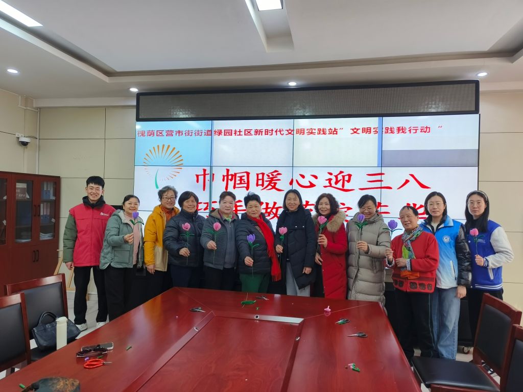 巾帼暖心迎三八,巧手做花绽芳华