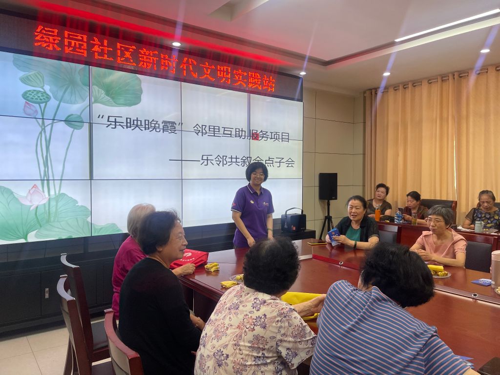 在前期针对社区社会组织骨干开展项目设计与活动组织的基础上,社工站针对“乐映晚霞”邻里互助服务项目进行项目解读、金点子议事。首先,社工引导社区社会组织成员分析“社区居民存在的需求有哪些”“身边的困境群体有哪些困难”,成员通过畅所欲言的发言逐渐明确本团队的主要服务群体。接着,社工以金点子议事会的形式,抛出“社区里的困境群体如何帮助”等问题。通过贡献一个个金点子,社工和社区社会组织更加明确了:力所能及的事社区社会组织来出力,力所不能及的转介社区和社工站进行帮扶。