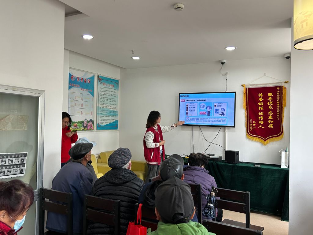 宣讲从老年人受骗的心理、常见的诈骗方式入手,社工结合PPT、宣传单页等形式,从身边典型的诈骗案例切入,通过具体案件向大家解释诈骗的常见形式和防骗方法,如诈骗分子以提供养老服务、投资养老等为诱饵,进而欺骗老年人,贴心叮嘱老年客户在日常生活中不轻信、不言目、不转账,远离养老诈骗陷阱,如遇可疑情形,多与子女沟通或寻求电话报警帮助,让不法分子无可乘之机。