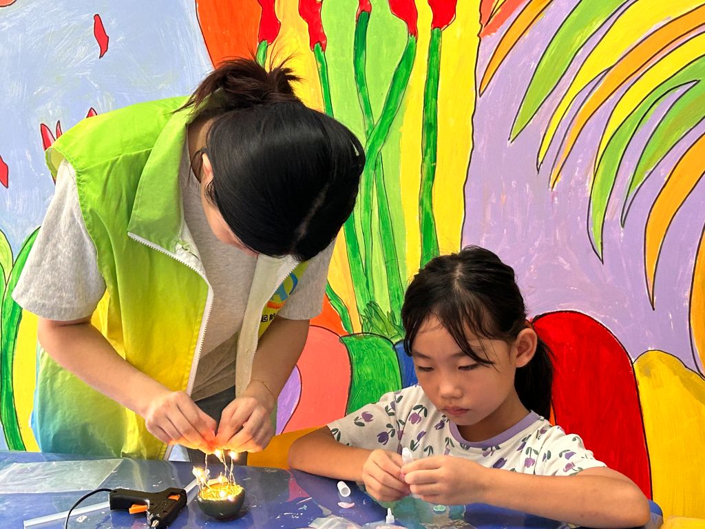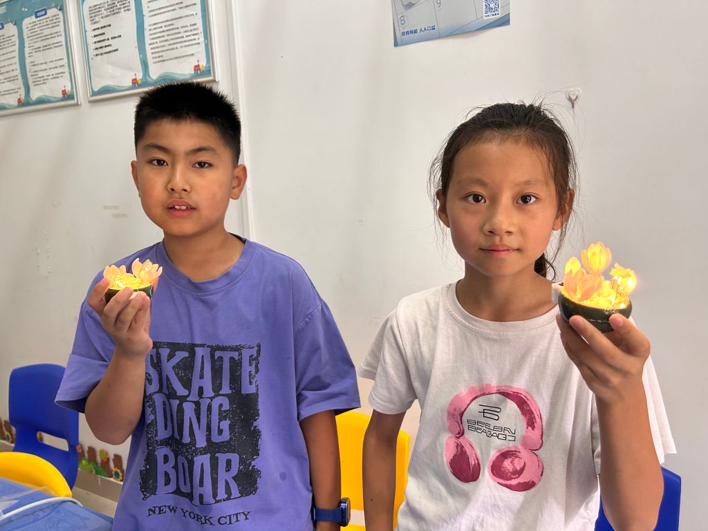 最后,社工帮助孩子们将开关安排好,并在所有装饰粘好后,再放上水晶石。孩子们看着自己亲手制作的荷花小夜灯,脸上洋溢着满足和自豪的笑容。“这是我做的荷花小夜灯,我要把它放在我的床头。”心心兴奋地说。其他孩子们也纷纷表示要将这盏灯带回家,作为这个暑假最珍贵的纪念。