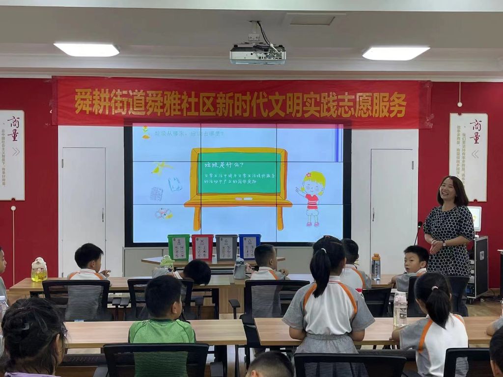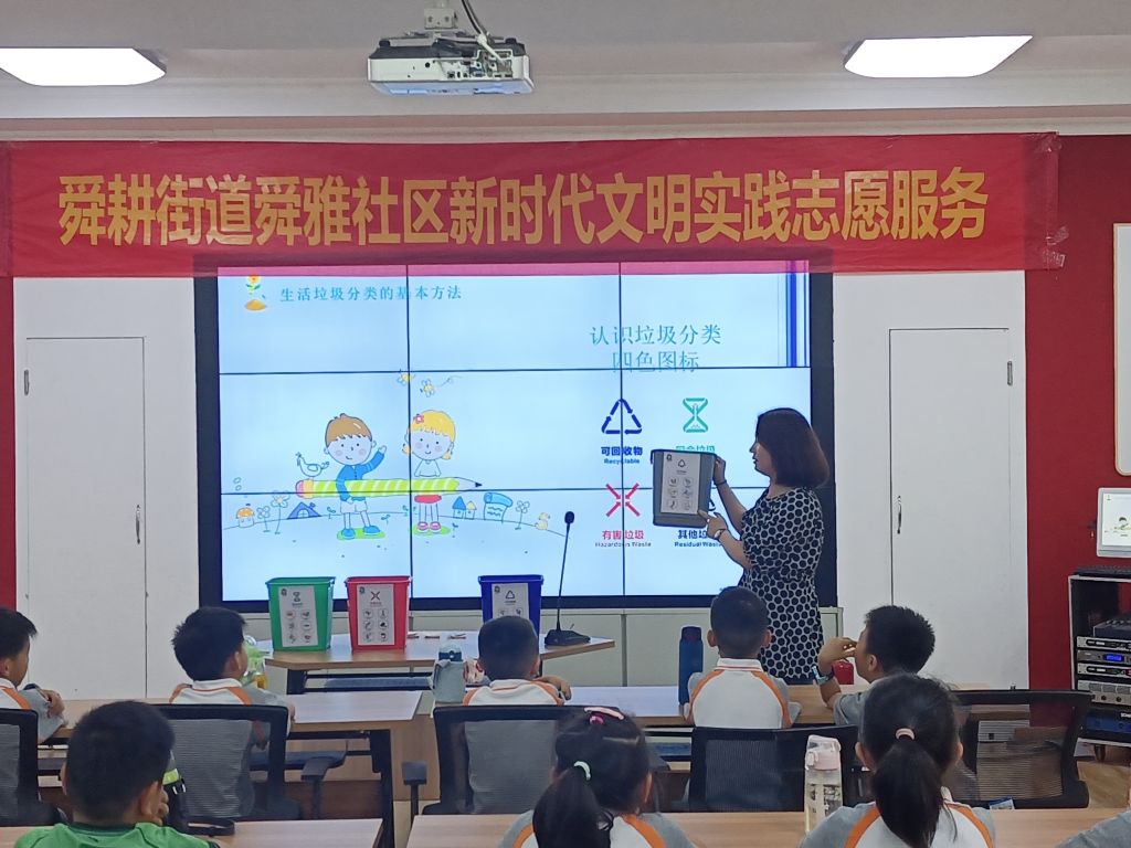 为了更好的提高辖区未成年人的垃圾分类意识,增强对垃圾分类知识的掌握,形成生活垃圾分类投放的良好习惯,舜耕街道社工站联合舜雅社区新时代文明实践站以及济南大学附属学校(舜文)开展了“童心助力心飞扬 垃圾分类我在行”的垃圾分类宣讲活动,通过科普垃圾分类常识、趣味游戏等方式,帮助同学们了解垃圾分类的重要性。