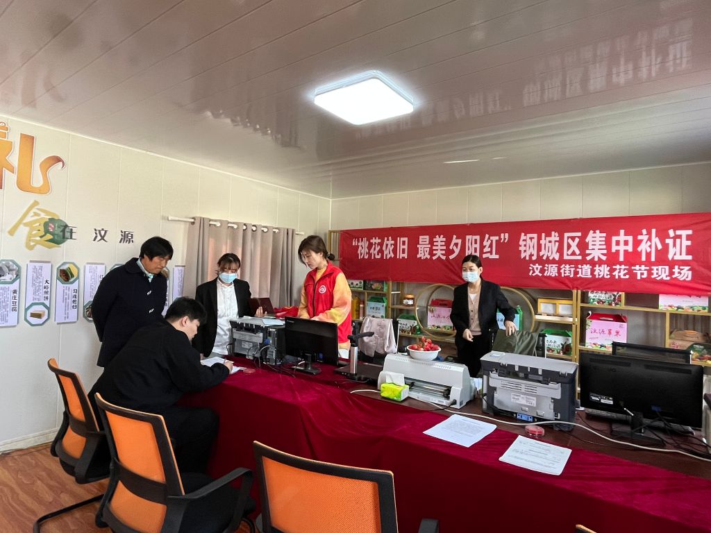 4月5日-6日,汶源街道第二十一届桃文化旅游节顺利举办。为满足钢城区老年人结婚证补办需求,汶源街道社工站联合钢城区民政局婚姻登记处,依托桃花节在杨家大峪村开展“桃花依旧·最美夕阳红”集中补证活动。