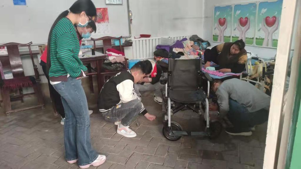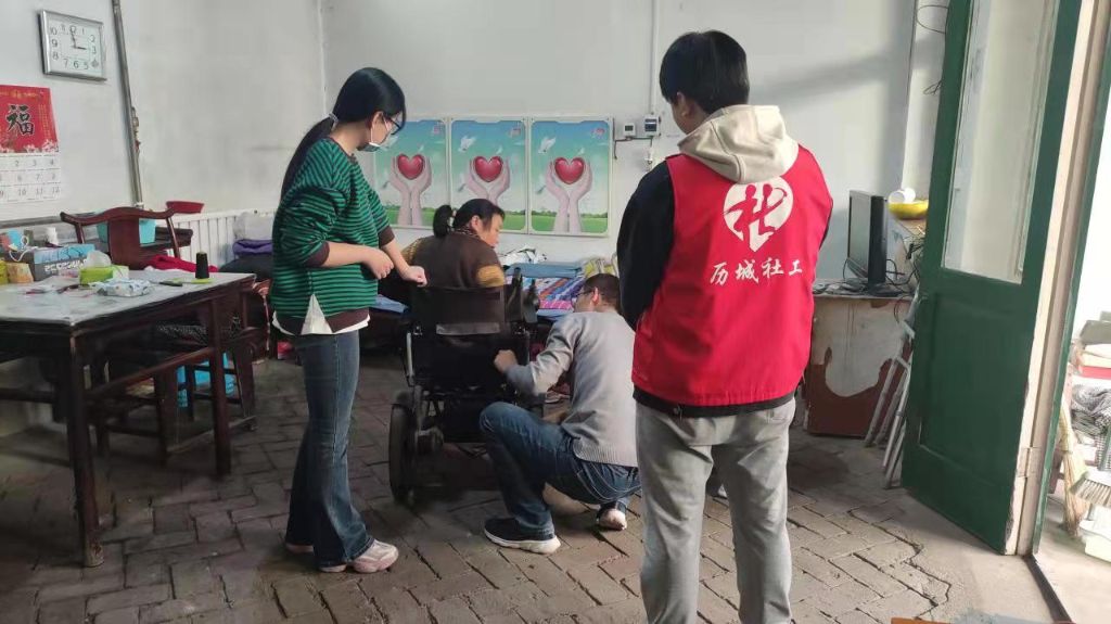 入户过程中,社工协助维修技术人员对轮椅进行了重新检测、维修和保养,检测过后根据服务对象提出的问题对轮椅进行了调整、更换小零件和修理轴承。社工仔细询问服务对象的身体状况、日常生活,并对居住环境进行安全隐患排查,及时记录在探访中发现的问题以及服务对象目前的实际情况,同残联向其解答在辅具使用、适配方面的政策问题,残疾人权益保障内容等。