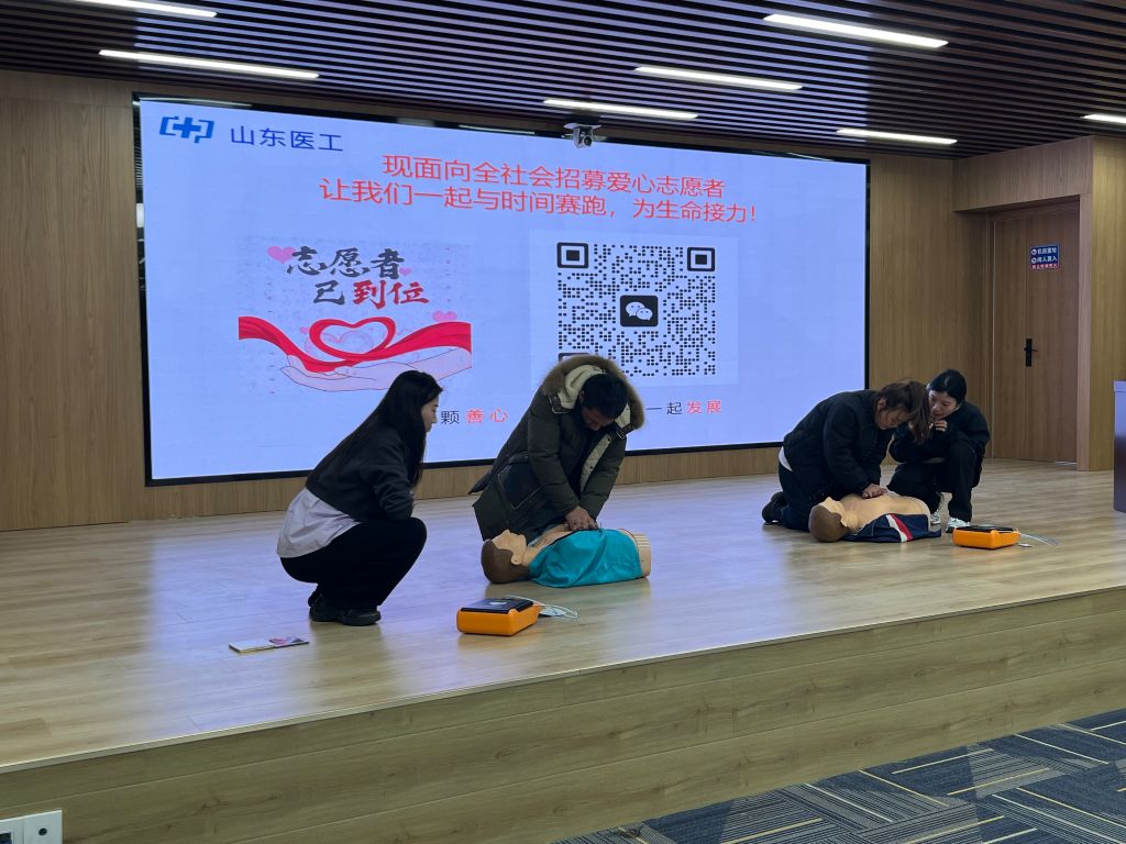 培训会上,山东医工培训老师就红十字运动基本知识救护概论向大家做了详细解说,主要内容有心肺复苏和气道梗塞的现场急救技术。现场采用授课、实践操作、现场模拟、情景演练、边讲边练、人人动手相结合的方式,教学互动氛围浓厚,以模拟橡胶人为器具,现场演示了正确的心肺复苏、创伤救护基本技能、气道异物梗阻等常见急症的应急处置方法。