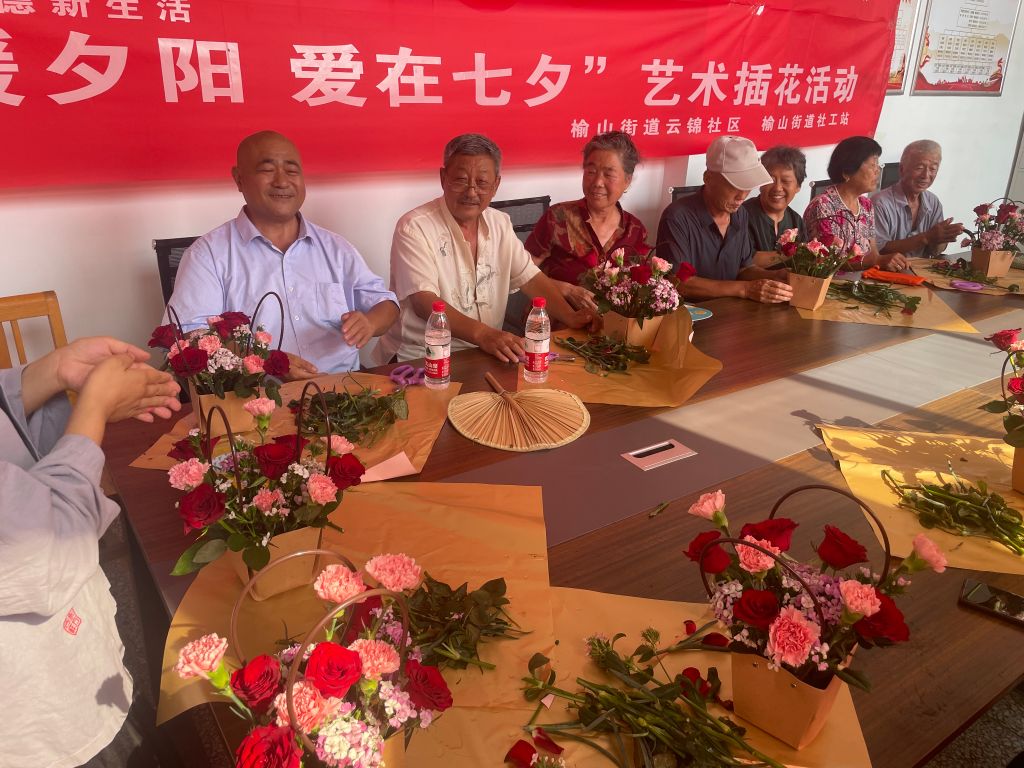 七夕是中华民族的传统节日,相传每年农历七月初七牛郎织女于鹊桥上相会,民间用这个故事象征长久真挚的爱情。8月21日下午,榆山街道社工站联合榆山街道云锦社区开展了“情暖夕阳,爱在七夕”活动,活动邀请了社区二十位老年人参加,通过活动学习插花艺术,寄托着对美好生活的向往和祝愿。