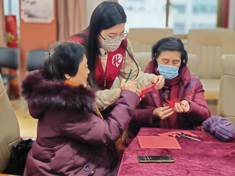每逢春节,人们便将美丽鲜艳的剪纸贴在家中窗户、墙壁、门和灯笼上,节日的气氛也因此被烘托得更加热烈。为了能够传承传统民族文化,迎接即将到来的新年,伴随着冬日里温暖的阳光,大观园街道社工站组织老年人在大观园街道经二路社区开展老年人手工小组活动。