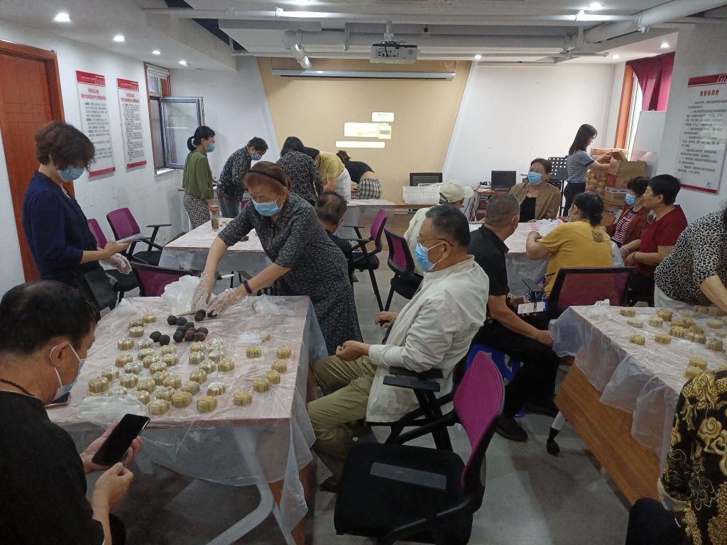 本次活动以“月饼DIY”形式开展,现场社工准备了丰富的食材和全套的工具,并邀请了经验丰富的糕点师傅进行全程指导。在糕点师傅的带领下,居民们热情高涨,揉面团、包馅料、磕定型......一盘盘精巧可爱的月饼很快制作完成。居民们第一次吃到自己亲手做的月饼,成就感倍增。手工月饼,包住的不仅仅是馅料,更是将心底里那一份份浓浓的祝福和节日的欢乐,“包”进了香喷喷的月饼中。