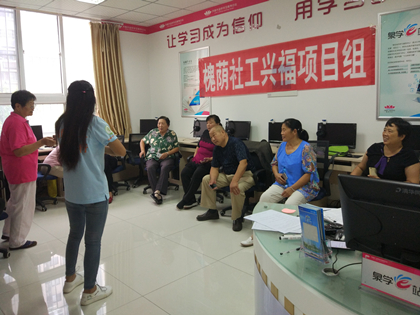 在短暂的休息之后,伴随着绵绵秋雨,9月6日,山泉驻槐荫区民政局兴福项目组社工带领小组成员迎来了第五期“精彩演e”智能手机小组的开课,并在兴福街道文化站举行了开课仪式,有8名小组成员与两名志愿者共同参加。