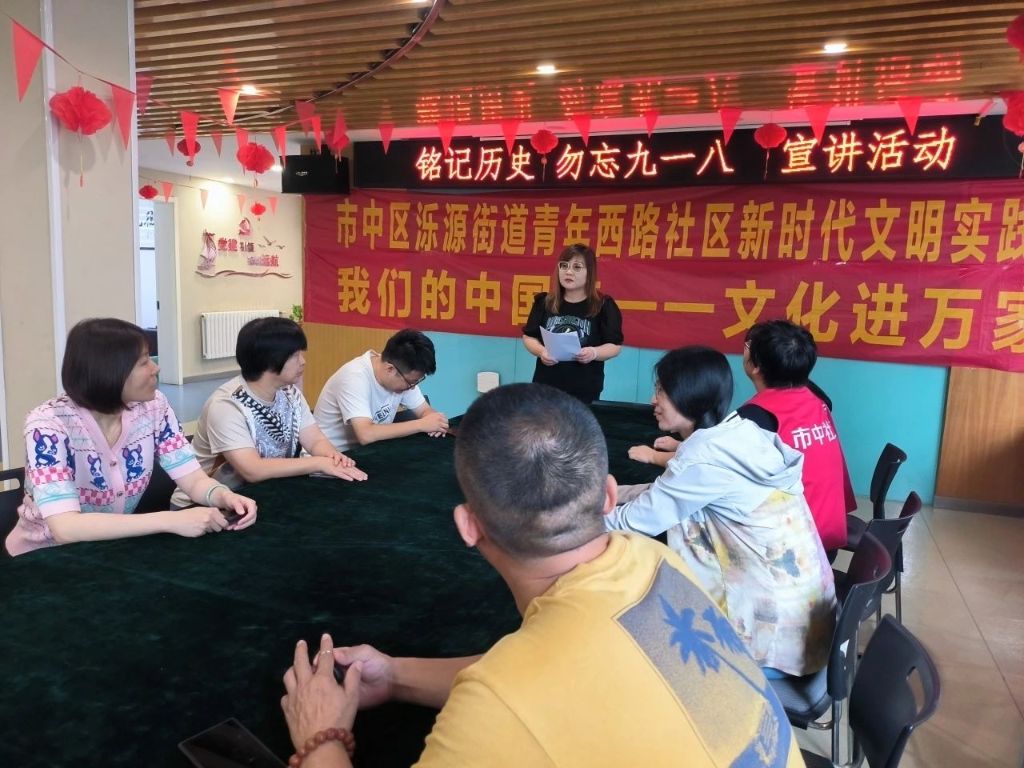 2023年9月18日,泺源街道社工站联合青年西社区开展铭记历史,勿忘“九一八”宣讲活动,受众居民20人。