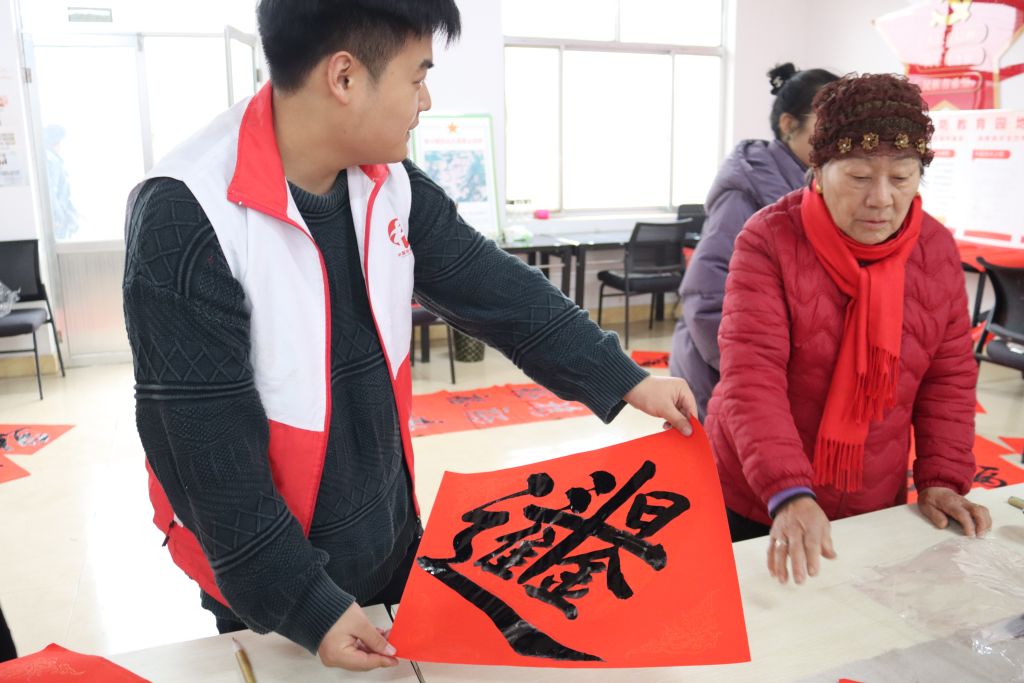 春节将至,年味渐浓。为营造喜庆祥和的节日气氛,传承中华传统优秀文化,弘扬敬老爱老新风尚,1月9日上午,张夏街道社工站发挥五社联动优势力量,链接张夏街道退休教师及书法爱好者开展“敬老送福共治理,文化下乡暖人心”活动,邀请张夏街道相关部门、绿豆囤村负责同志共同参加。