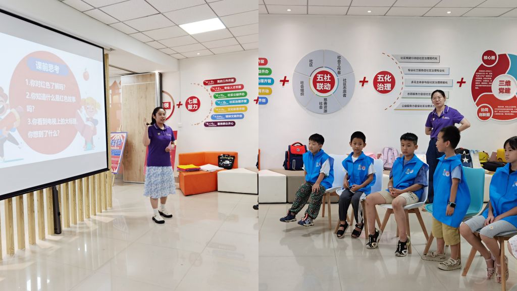 重温红色故事,传承红色精神。活动开始青少年在社工的带领下穿越时空感受北大红楼马克思主义的传播的希望、五四运动的热血、一大紧张气氛和十四年艰苦抗战,最终迎来栉风沐雨的新中国。百年征程,波澜壮阔。走进那段红色历史,让青少年体会到今日的幸福来之不易,我们应牢记历史,珍惜当下。