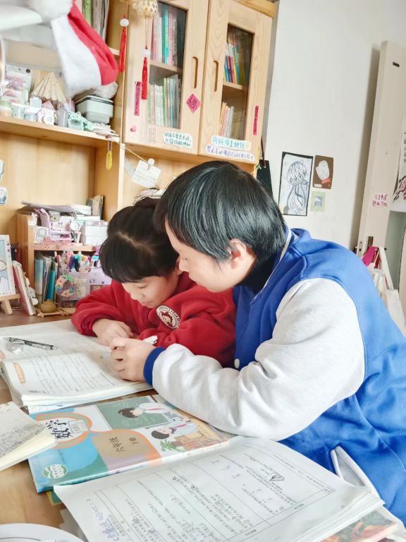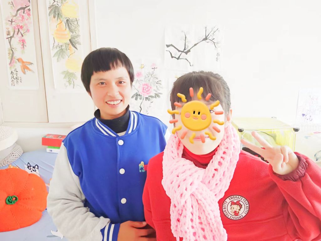 此次入户,社工为圆圆提供了针对性帮扶服务。针对圆圆数学成绩较差,跟不上学校的进度这一情况,提供课业辅导精准帮扶工作。针对圆圆家庭支持网络单薄、单亲造成的心理压力大的情况,社工提供心理疏导,普及心理健康常识,帮助母女俩提高心理健康意识。为了丰富圆圆的精神文化生活,社工现场教其母女织起了围巾,活动中,大家有说有笑,互相拍照,家庭氛围变得温暖开心。不知不觉两个多小时过去了,离别的时刻,圆圆的母亲告诉社工:“谢谢你们的陪伴,这是我们母女难得的合影,今天很开心。”