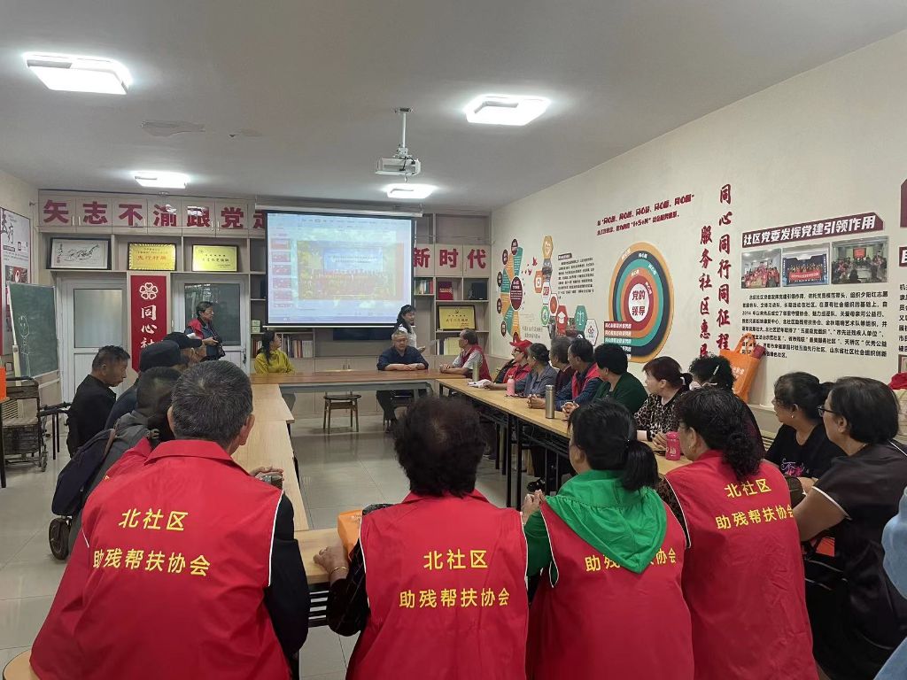 活动伊始,北区社区居委会陈书记向到场老年人、残疾人及助残帮扶协会成员送上了节日祝福。随后,介绍当前社区社会组织的整体服务情况,在一张张幻灯片的讲解中,北区社区的优秀社会组织成员、网格员、志愿者呈现在众人眼前。到场的许多居曾民接受过他们的帮助,在温馨祥和的氛围中,他们表示正是在社区和志愿者们的悉心照料下,自己的日常生活才能有序进行。一声问候,两句细语,茶话会洋溢着浓浓的情意。
