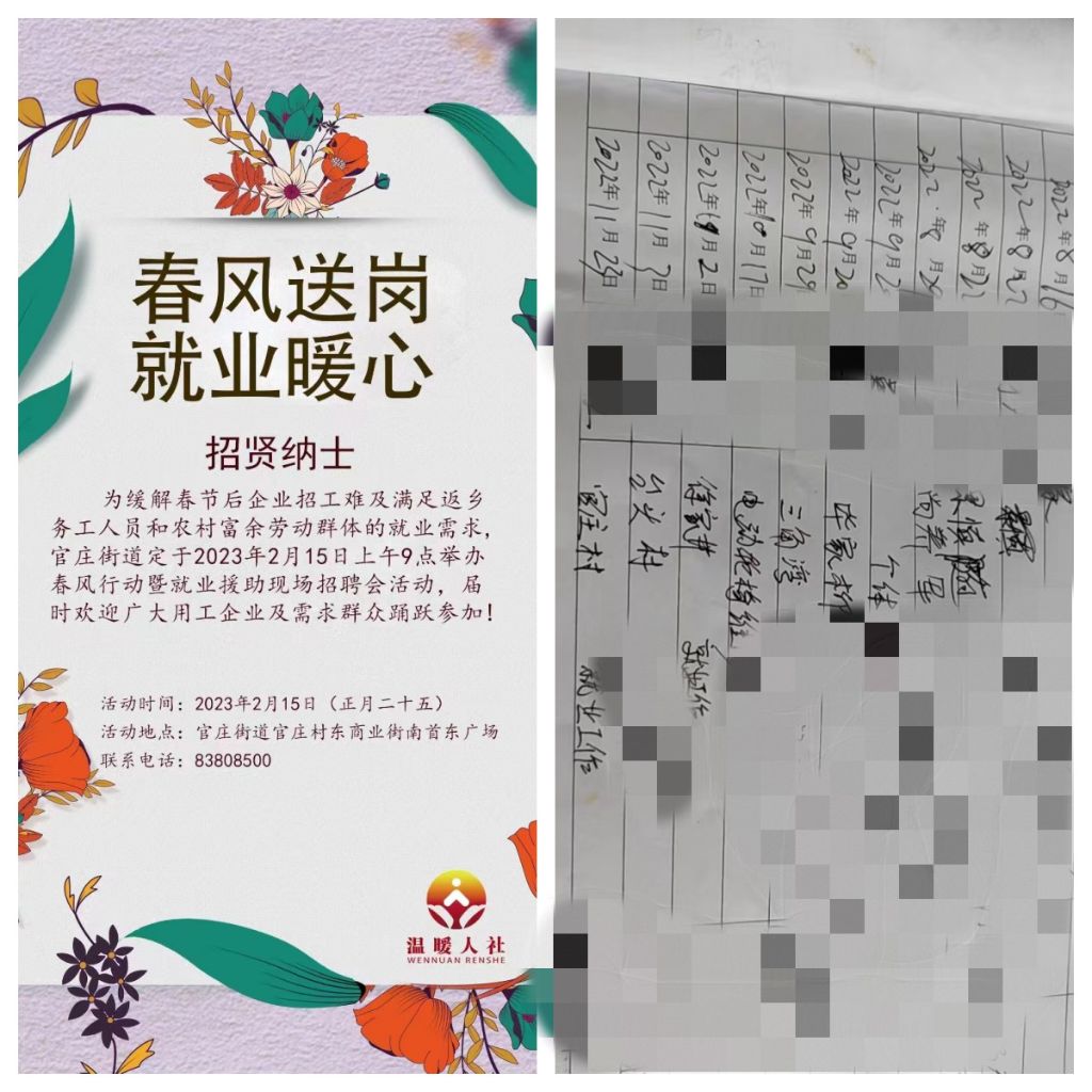 为帮助各类就业困难人员和残疾登记失业人员实现就业,2月15日上午,济南市章丘区官庄街道社工站、街道民政所、残疾人联合会、社会保障服务中心联合行动,在官庄街道东商业街广场举办“2023年春风行动暨就业援助月”招聘会。