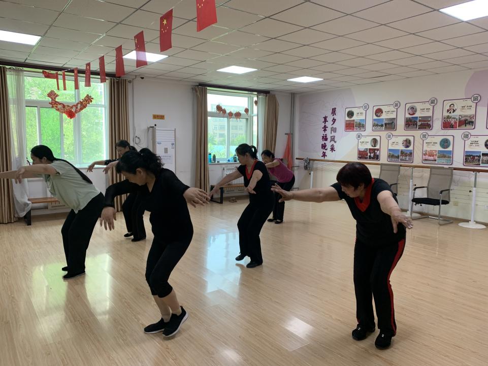 “朝霞”舞蹈队学习民族舞技巧