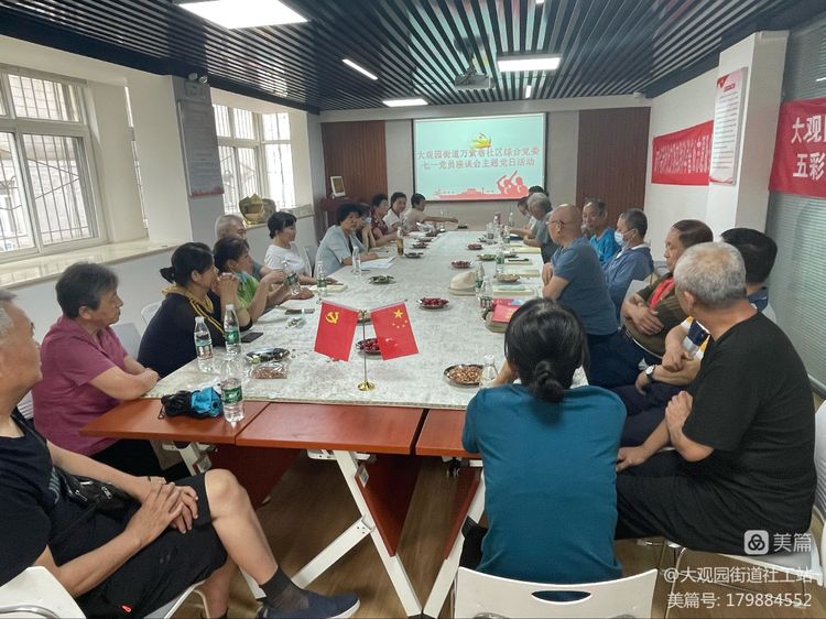 在中国共产党建党101周年来临之际,为回顾党的历史,缅怀党的丰功伟绩,深入学习贯彻党的十九大精神和习近平新时代中国特色社会主义思想,把“不忘初心、牢记使命”主题教育活动落到实处。近日,大观园街道社工站联动万紫巷社区在会议室召开“庆七一”重温红色记忆座谈,共有20名党员代表参加此次会议。