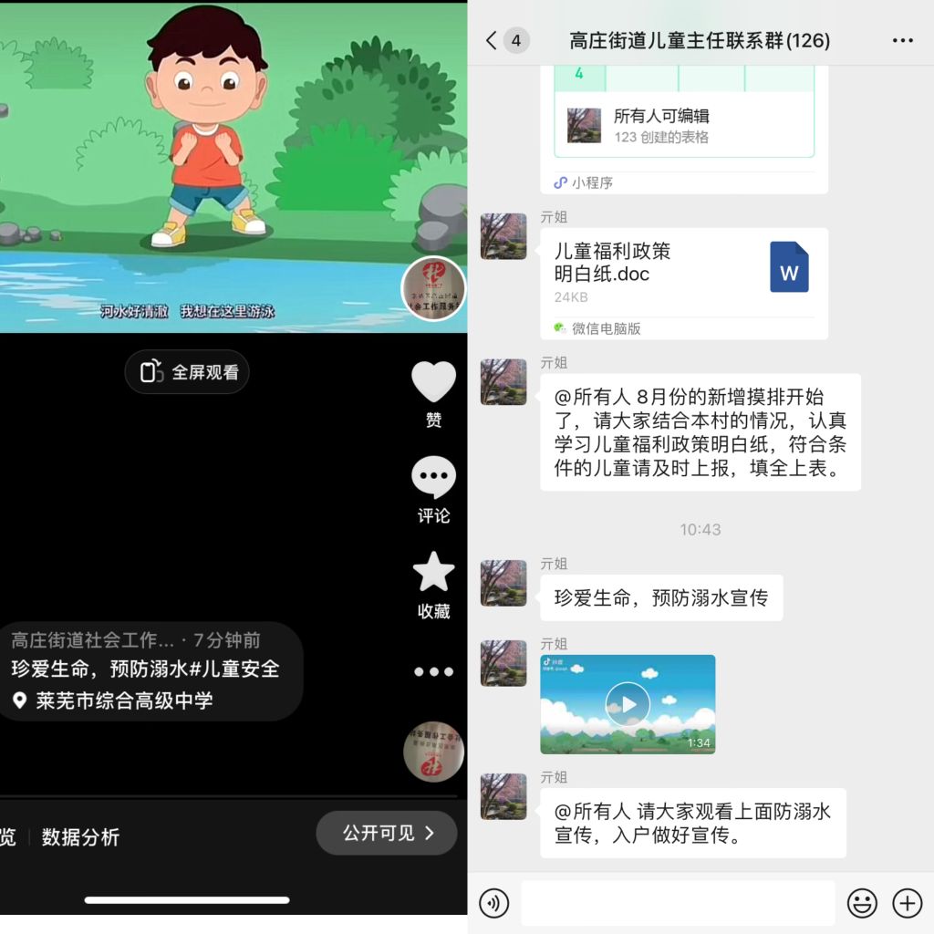 此外,高庄街道民政办和社工站还充分利用了新媒体平台,通过微信群、抖音等渠道,广泛传播防溺水知识,引导居民们关注并学习防溺水知识,形成了线上线下相结合的宣传格局。
