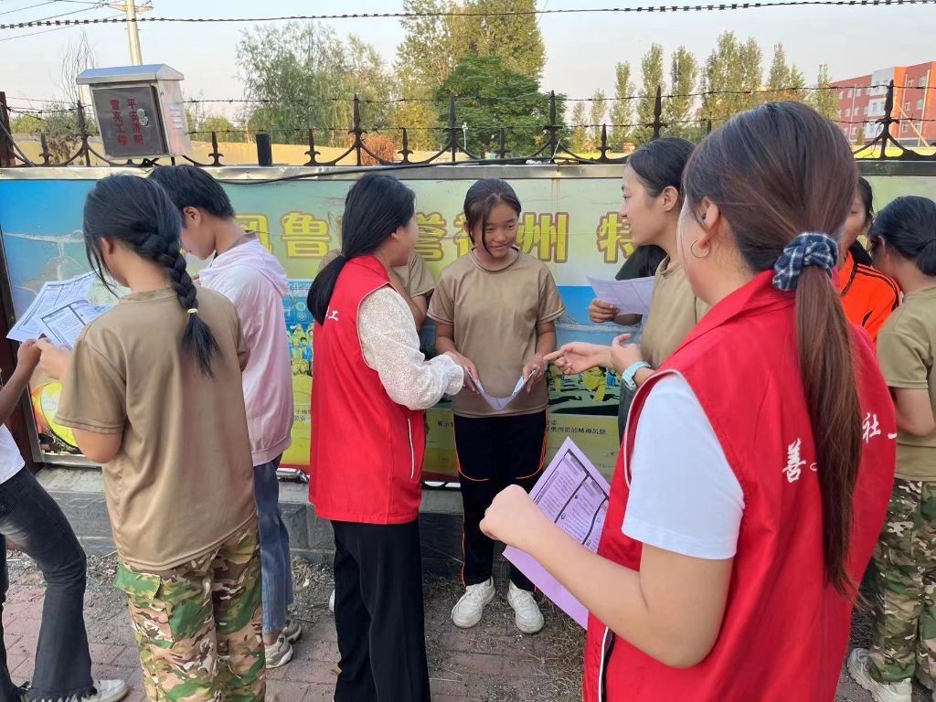 活动开始,社工通过发放《未成年人保护法》宣传页,在发放过程中讲解最新的《未成年人保护法》以及《未成年人保护法》的意义,并结合家庭、社会、学校、网络保护四个方面介绍了一些关于未成年保护的相关法律知识。引导他们知法、学法、懂法、守法。告诉他们遵纪守法的重要性,同时让他们了解在什么情况下可以运用法律来保护自己的人身权益不受伤害。社工还鼓励孩子们把所学的知识带回家,与父母、亲戚分享,从而将保护未成年人的理念延伸到每一个家庭。