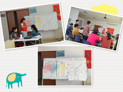 活动伊始,社工介绍了活动的主题、目标及流程,让服务对象对本次主题活动有基本了解。然后,为加深服务对象之间的认识,社工带领组员开展了破冰游戏-“棒打记不住”,组员们“爱恨交织”的表现逗得大家捧腹大笑。随后,社工运用开放空间技术通过分组引导组员围绕“我想收获什么”“不喜欢的行为”“我要做到什么”三个问题展开充分讨论了解了组员对小组的期望,引导组员制定了小组契约。