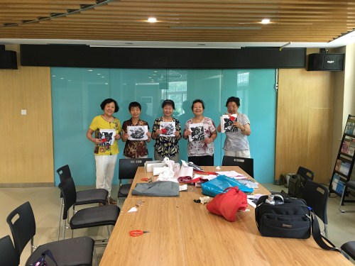 在活动开始时,为了让小组成员在活动剪纸更加顺利灵活,进行了紧张而又有趣的简单小游戏,现场气氛十分的活跃。趁着活跃的气氛,剪纸老师田老师对这节课要学习的内容进行了讲解。通过前几节课的学习,小组成员的技术也越来越熟练,不一会就剪出了生动的“蝶恋花”图案。