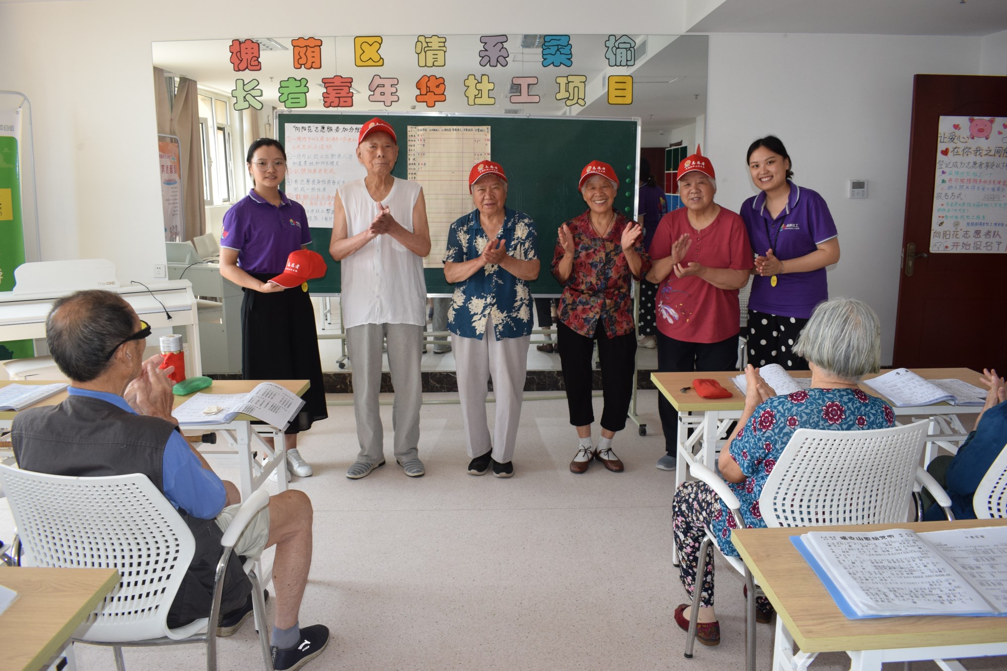 为激励其他老人向“爱心大使”们学习,在福利中心营造乐于助人的氛围,7月29日,项目组对7月份诞生的“爱心大使”进行表彰,他们分别是石爷爷、金奶奶、赵奶奶、张奶奶、赵奶奶。在大家的掌声中,爱心大使走上前来接受社工颁发的向阳花志愿者队的标志——向阳帽,鲜红的颜色最能代表他们的古道热肠。