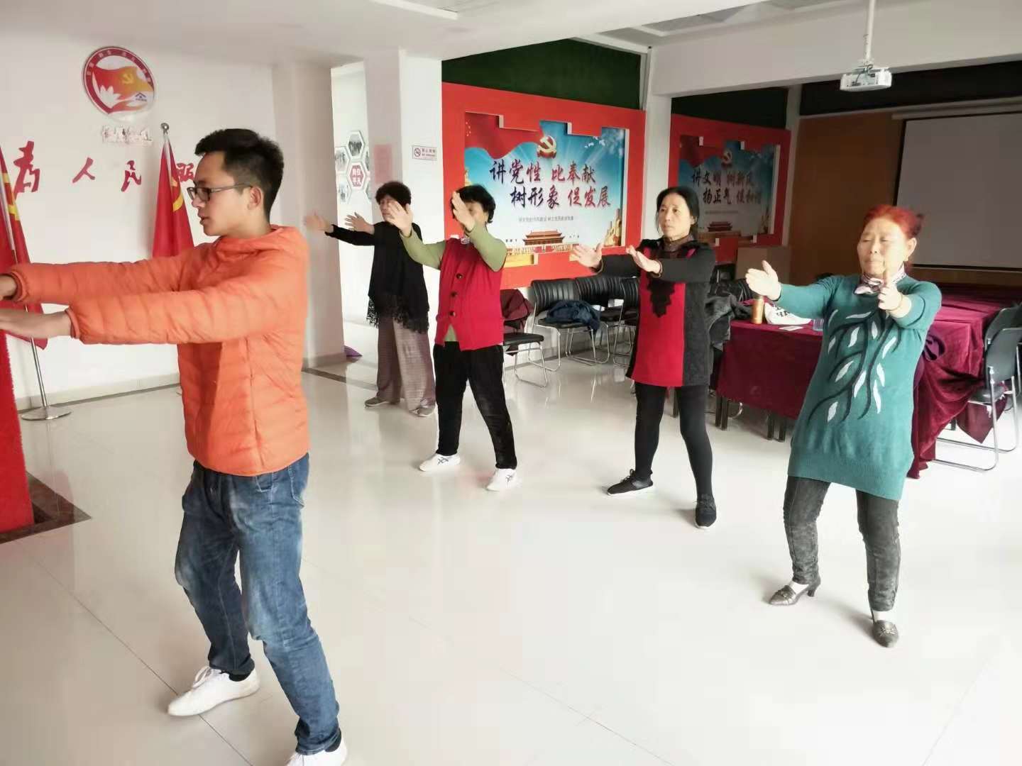 为培养社区居民养成科学健身的习惯,推进“全民健身”工作。12月1日,长清项目组在耕读世家社区活动室开展太极拳培训班第一期第一节课程。活动旨在通过举办太极拳培训班,倡导社区居民群众广泛推广、组织开展太极拳健身活动,传承发展民族传统体育健身项目,丰富老年人精神文化生活,增进老年人身心健康,提高老年人健康幸福生活指数。