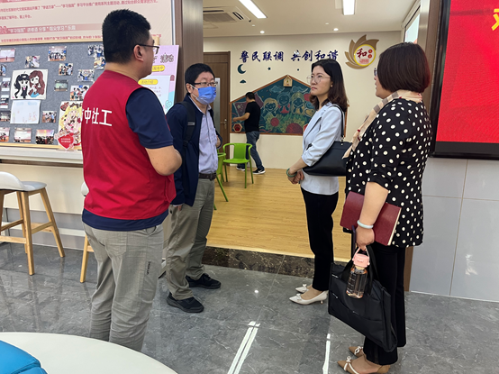 调研组一行实地查看了社工站的场地建设、功能区划分、人员配备等情况,认真听取了街道社工站的工作汇报,详细了解了站点的各项运营情况;随后,开展座谈交流,分别从社工站服务内容、服务方法、典型案例等相关方面进行了沟通与讨论。调研组对社工站开展的工作情况给予了充分肯定,指出社工应以精细化、专业化、本土化的服务做好民生兜底服务,实现打通民政服务的“最后一米”。